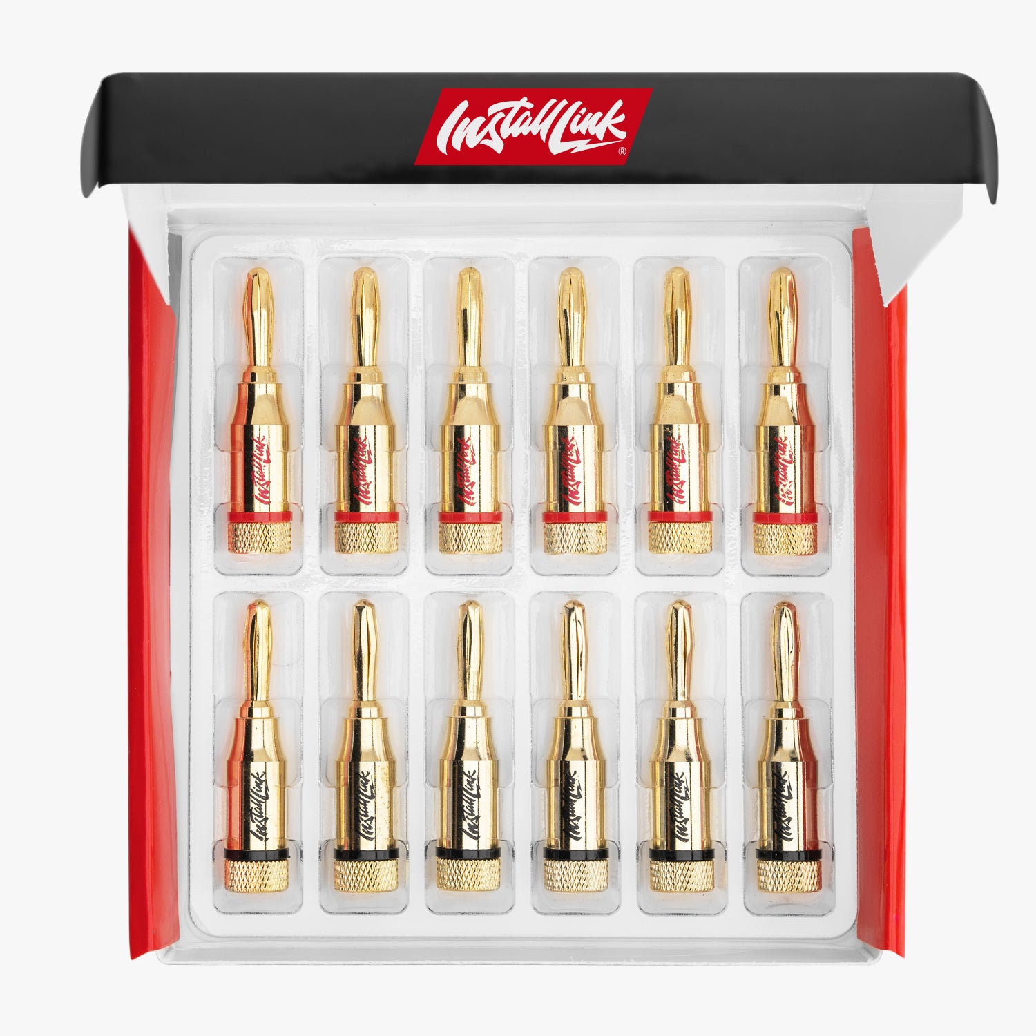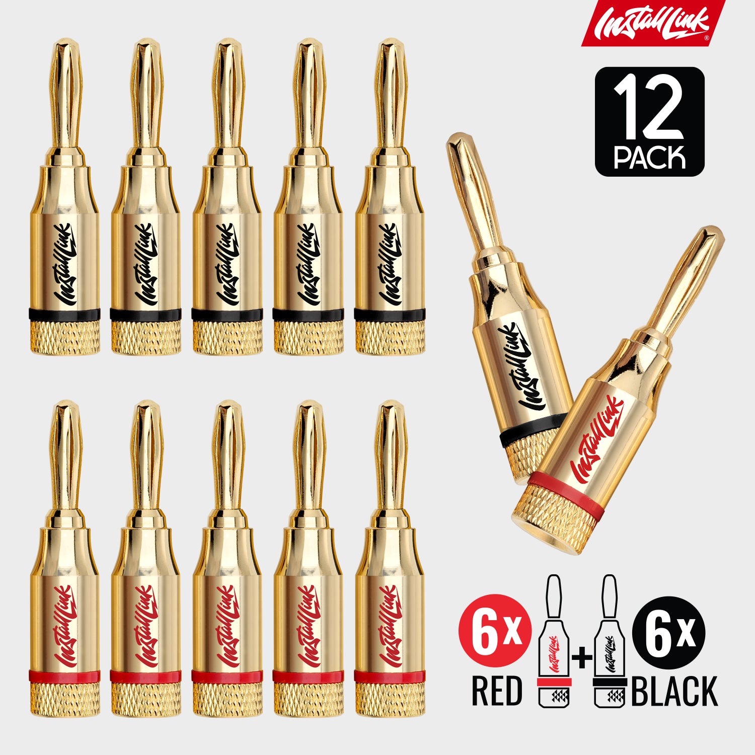 - PREMIUM BANANA PLUGS, 12 PACK – Ready to use with 12, 14, and 16 gauge wire for optimal conductivity and crystal-clear audio. Includes 6 red and 6 black coded plugs.