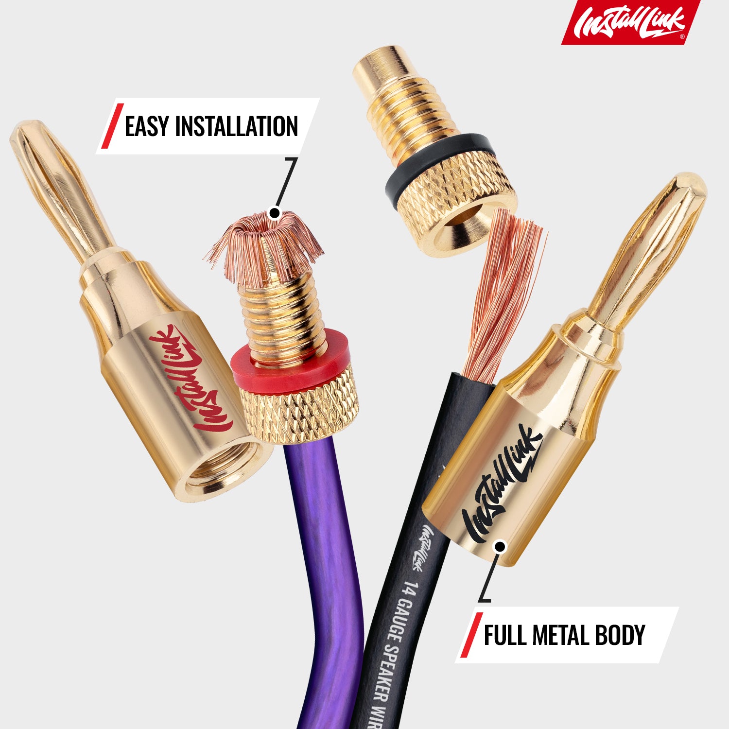 - BETTER CONDUCTIVITY – Gold-plated metal minimizes resistance and signal loss, with easy polarity identification through red/black coding to help avoid wiring mistakes.